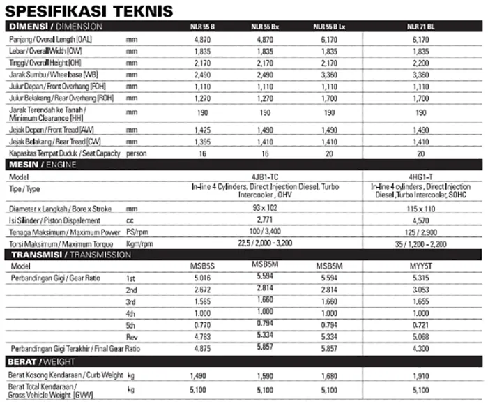 DETAIL SPESIFIKASI ISUZU